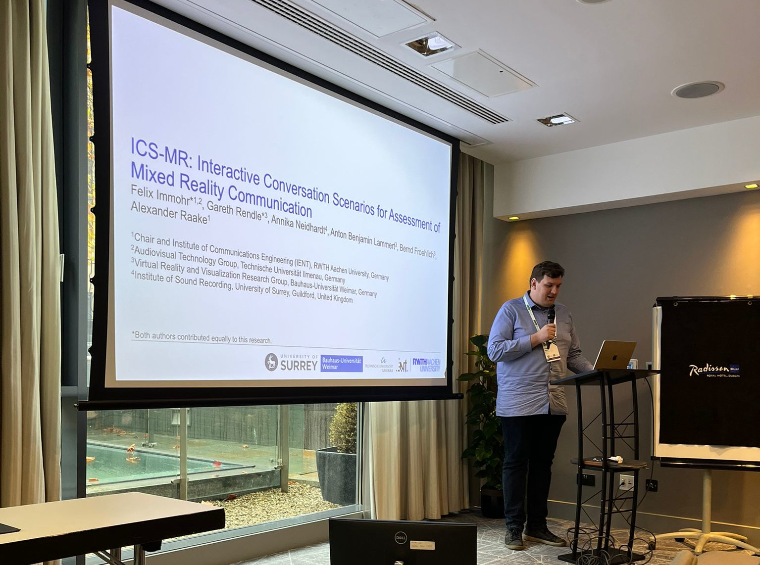 Im Rahmen der 33rd ACM International Conference on Multimedia 2025 (ACM MM'25) in Dublin (Irland) stellte Felix Immohr das Paper „ICS-MR: Interactive Conversation Scenarios for Assessment of Mixed Reality Communication“ mit zugehörigem Datensatz von Felix Immohr, Gareth Rendle, Annika Neidhardt, Anton Benjamin Lammert, Bernd Froehlich und Alexander Raake vor.