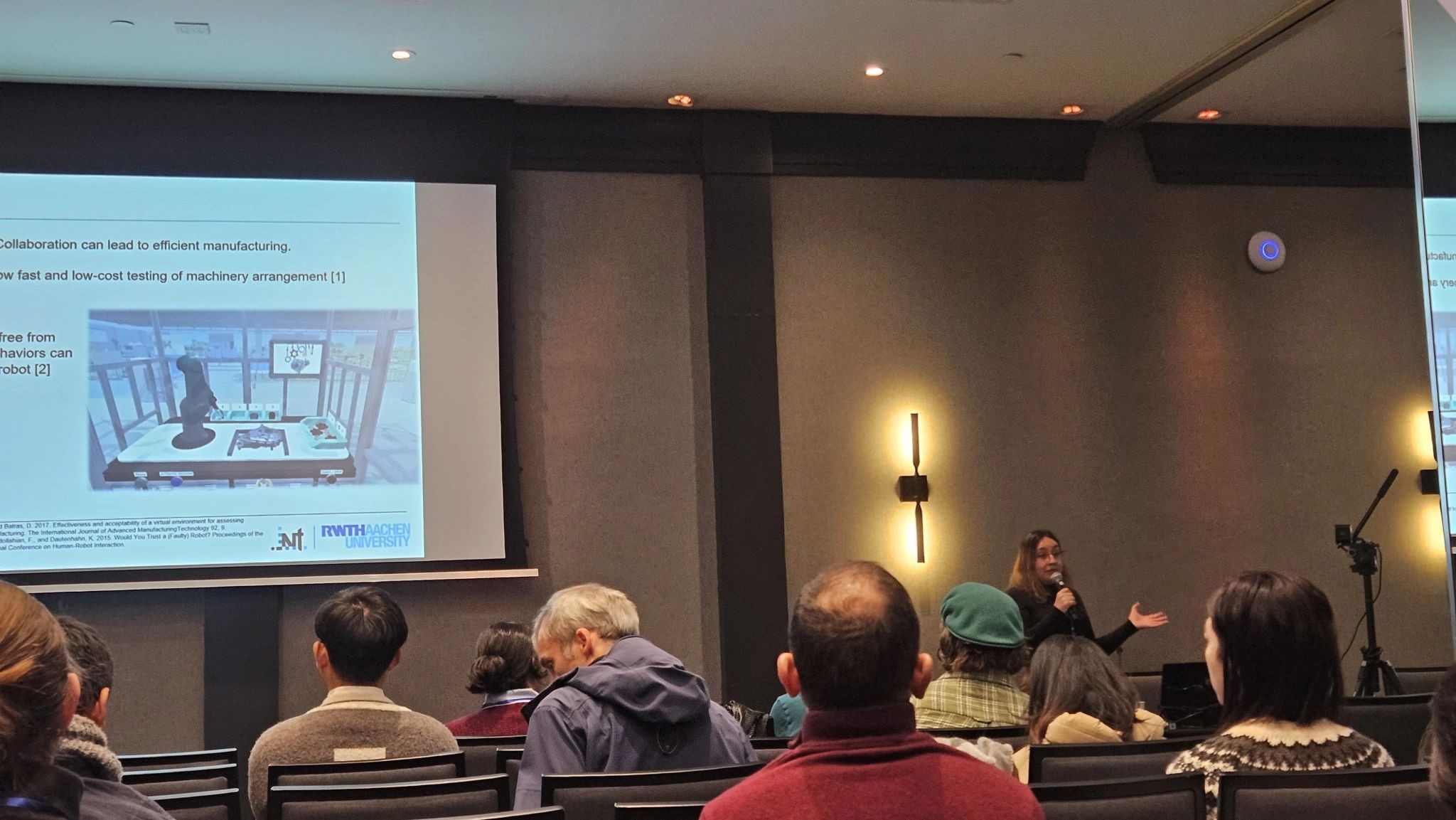Dr.-Ing. Stephanie Gabriela Arévalo Arboleda presented the paper "Errors matter! The Influence of Error Frequency and Timing on Fluency and Workload in a Virtual Human-Cobot Collaboration Environment" at the 31st ACM Symposium on Virtual Reality Software and Technology (VRST) in Montreal, Canada, from November 11-14, 2025.